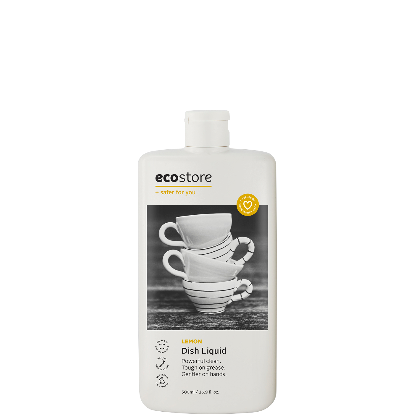 One squirt required (about 8ml) will clean a standard sink full of dishes. Not for use in dishwashers, instead try ecostore Dishwasher Powder or Dishwasher Tablets.